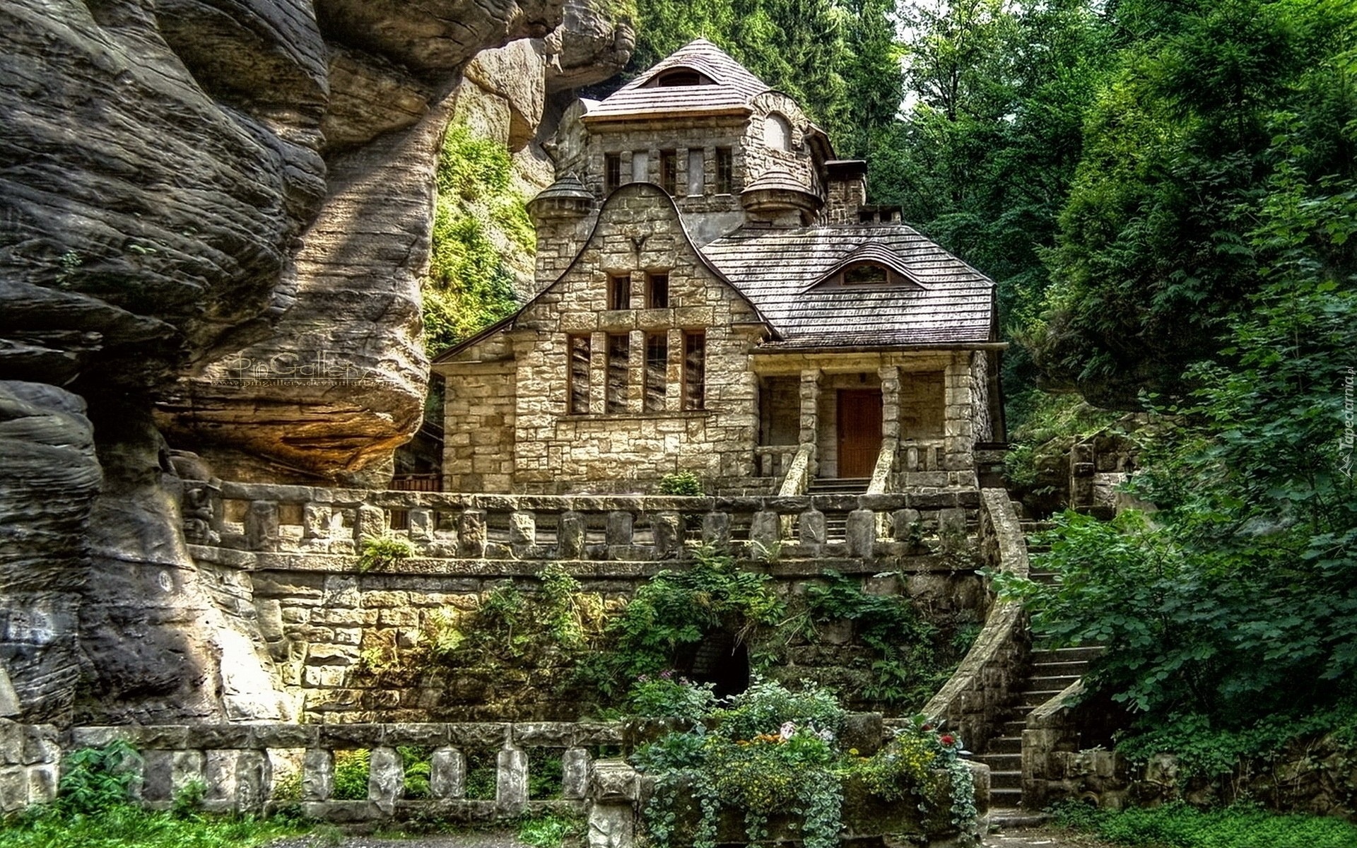 Edytor tapety: Stary, Dom, Schody, Ogród