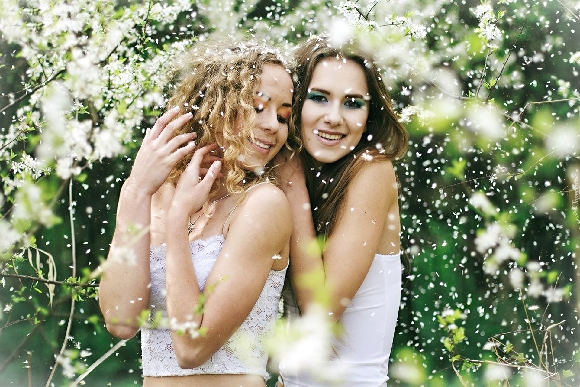 Edytor tapety: Dwie, Kobiety, Kwiat, Wiśni