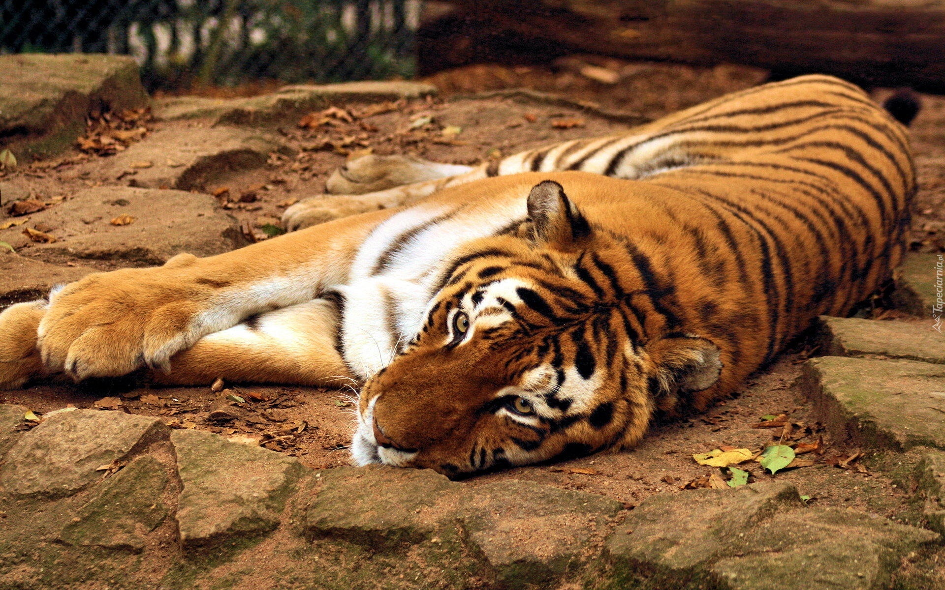 Edytor tapety: Leżący, Tygrys, Kamienie