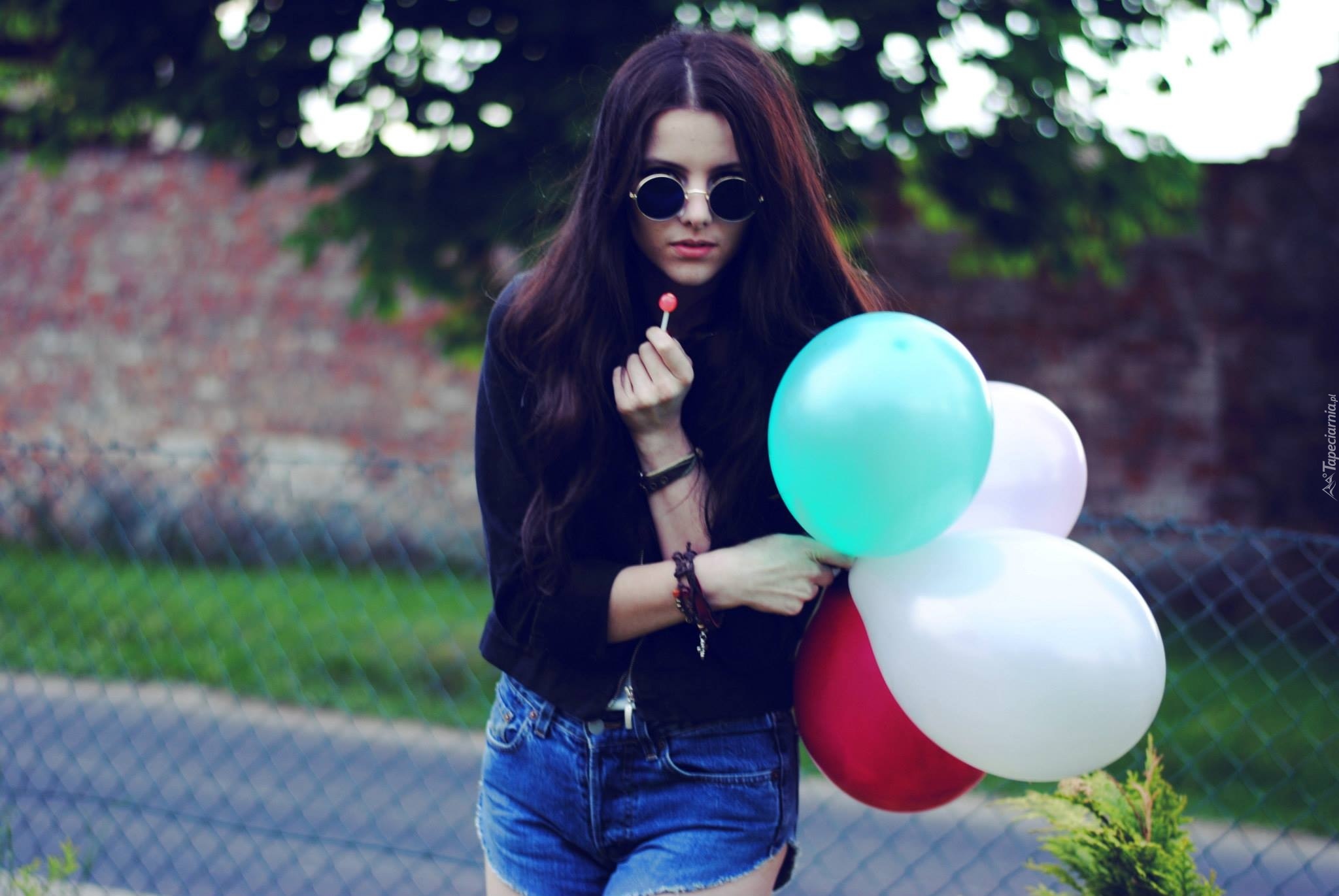 Edytor tapety: Kobieta, Brunetka, Okulary, Balony, Lizak