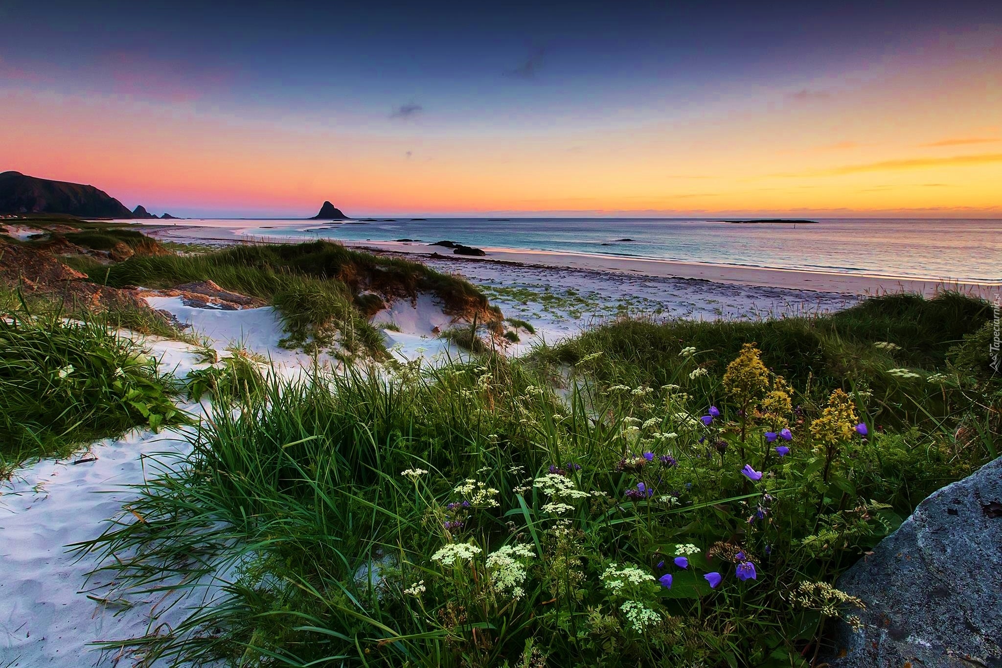 Edytor tapety: Zachód, Słońca, Morze, Wydmy