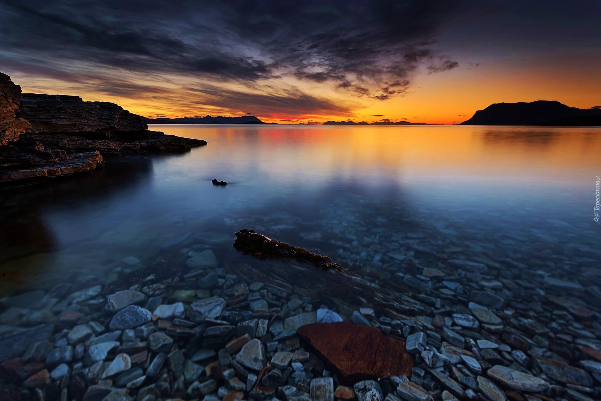 Edytor tapety: Zachód, Słońca, Morze, Kamienie