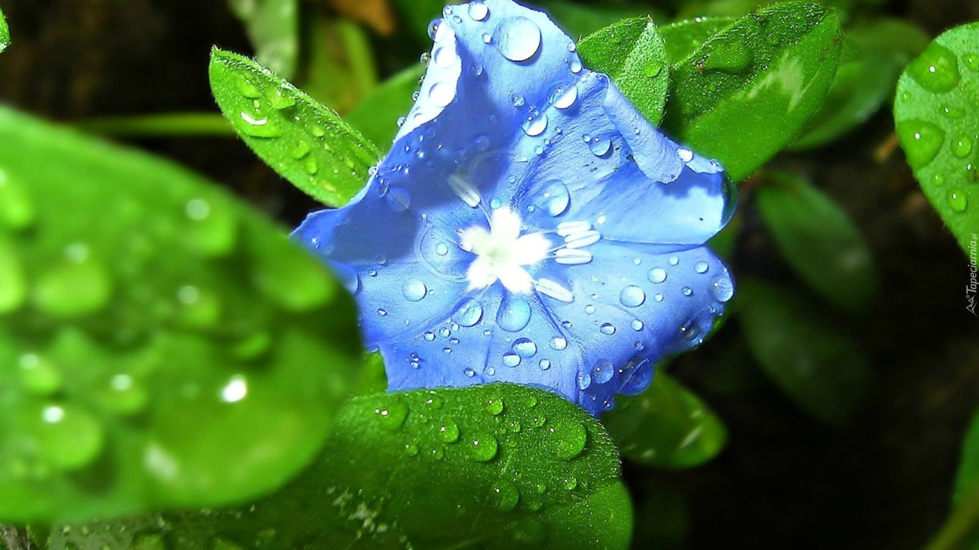 Edytor tapety: Niebieski, Kwiatuszek, Liście, Rosa