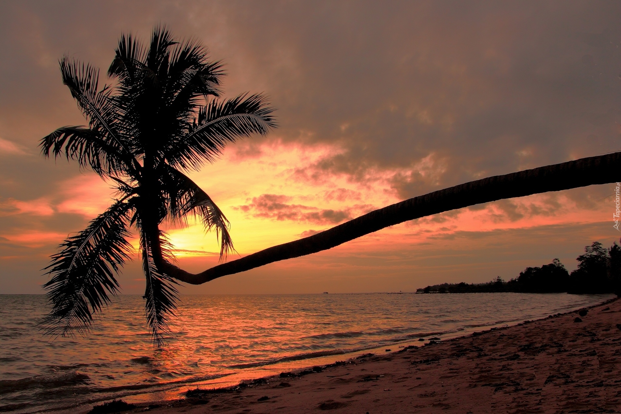 Edytor tapety: Zachód, Słońca, Morze, Palma