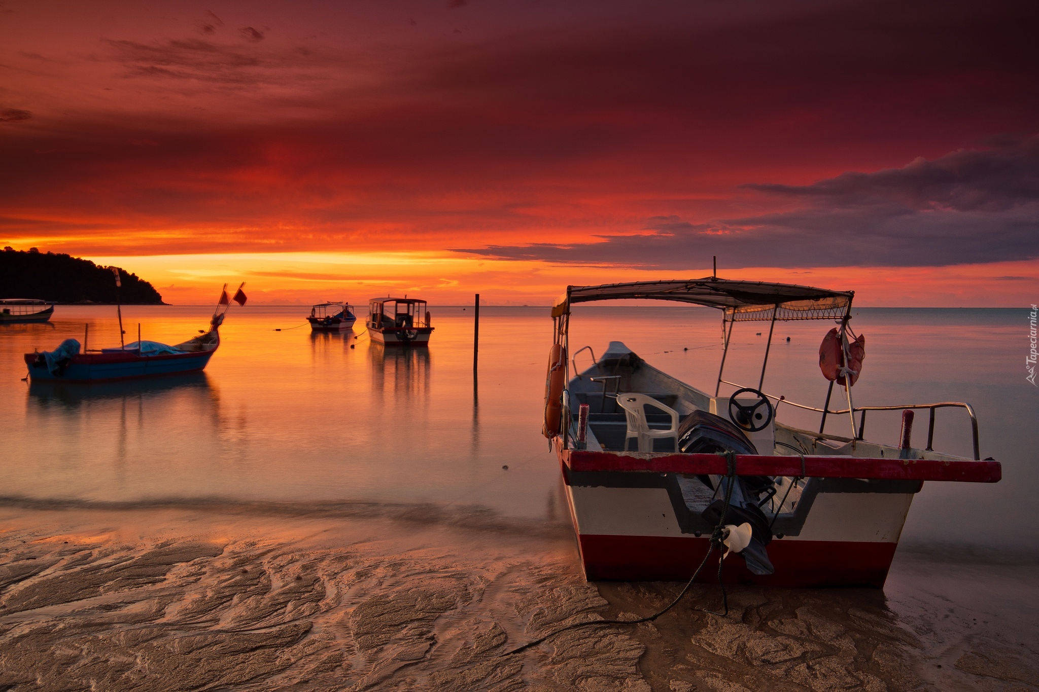 Edytor tapety: Wybrzeże, Łodzie, Zachód, Słońca