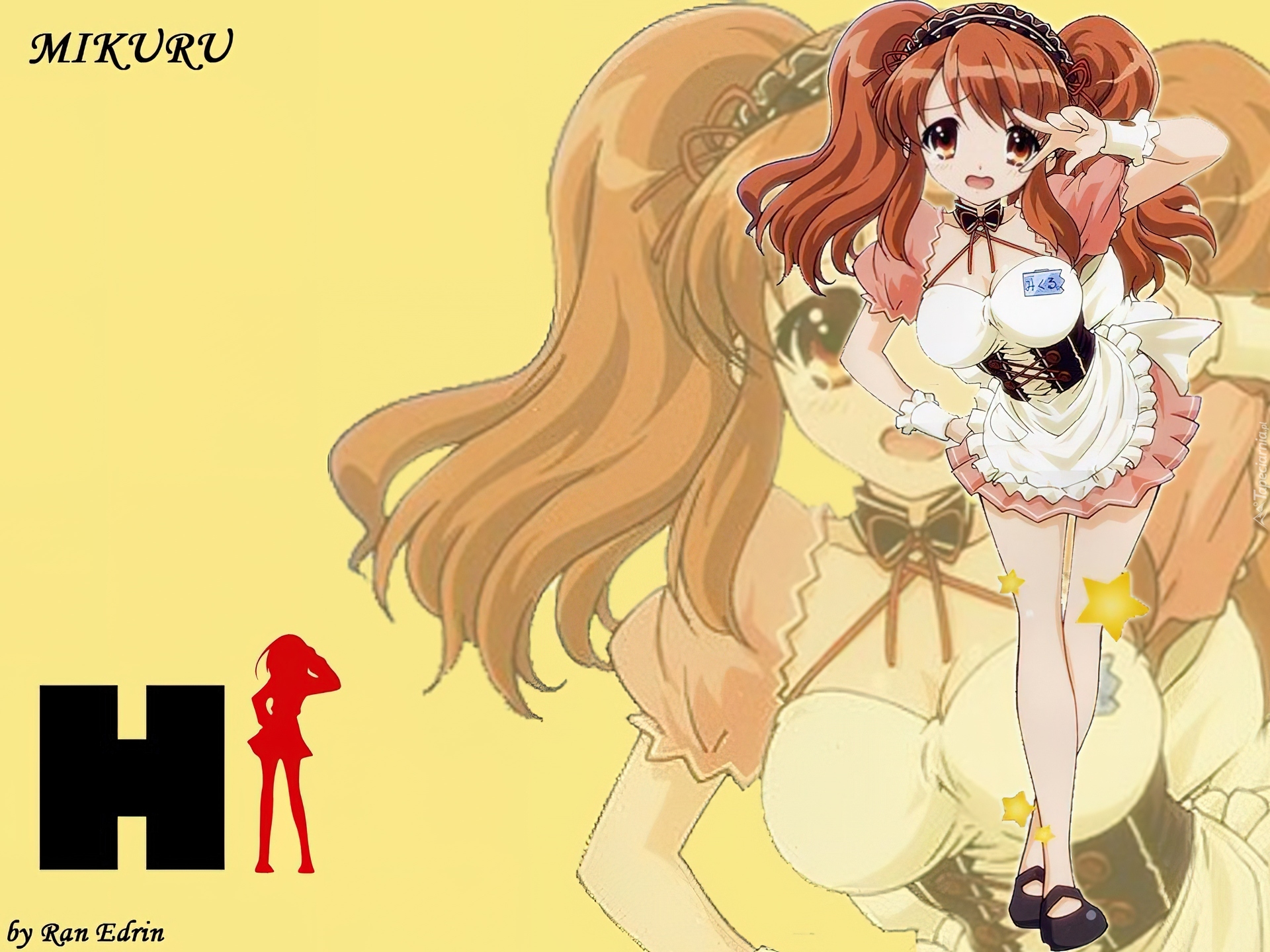 Edytor tapety: Suzumiya Haruhi No Yuuutsu, Mikuru, rude włosy