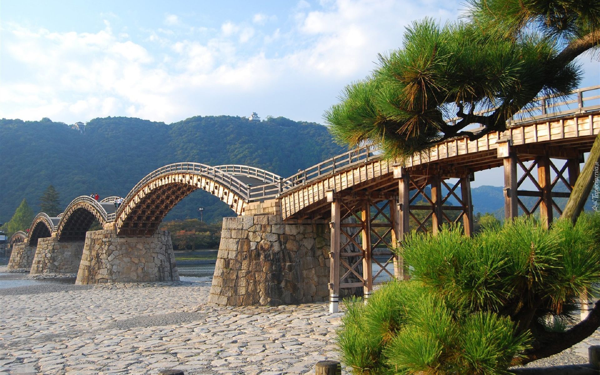 Edytor tapety: Most, Łukowy, Drewniany, Rzeka, Gałęzie
