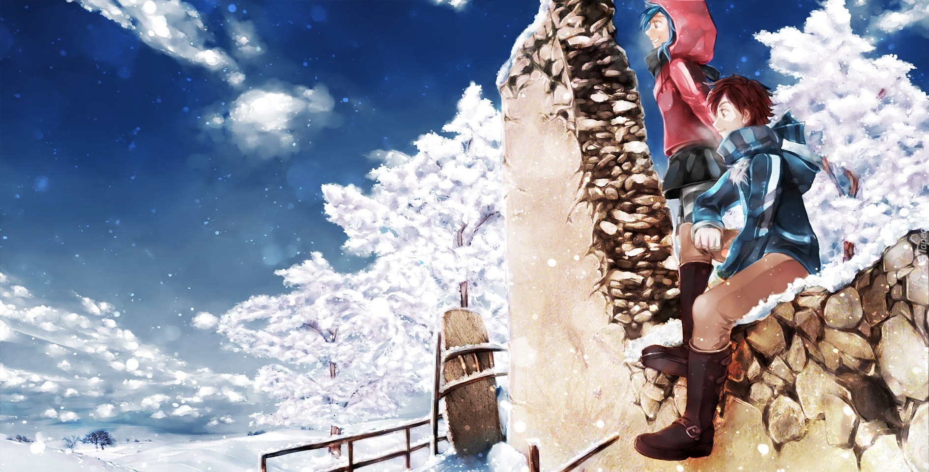 Edytor tapety: Dziewczyna, Chłopak, Śnieg, Manga Anime