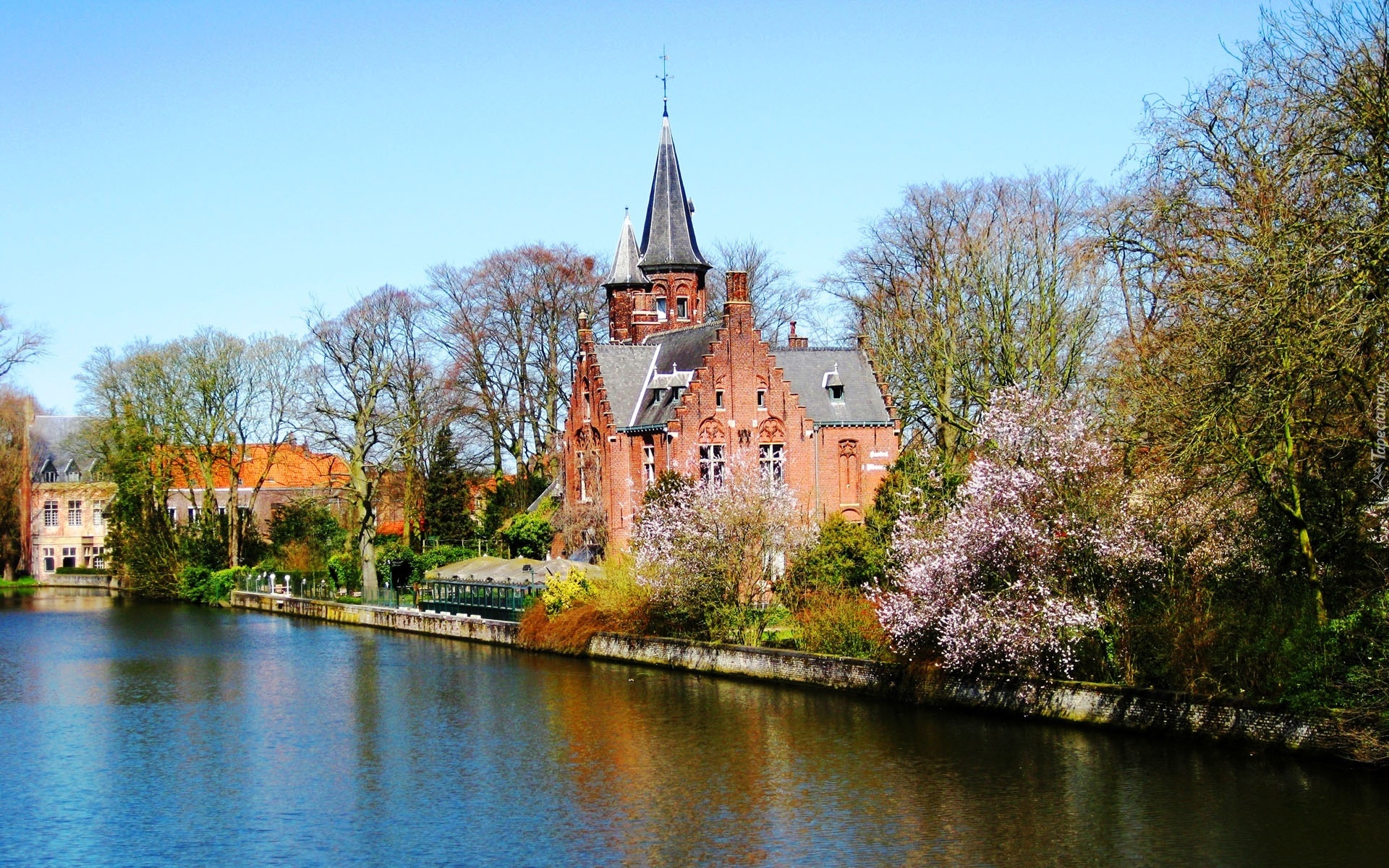 Edytor tapety: Brugia, Kanał, Pałacyk, Domy, Drzewa