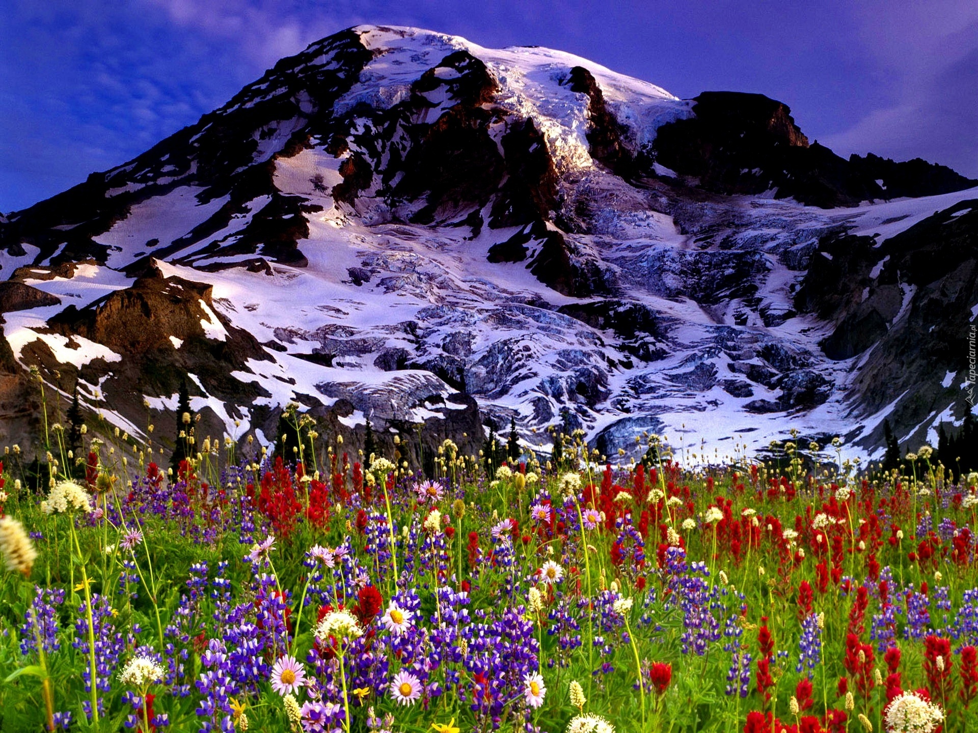 Edytor tapety: Zachód, Słońca, Ośnieżone, Góry