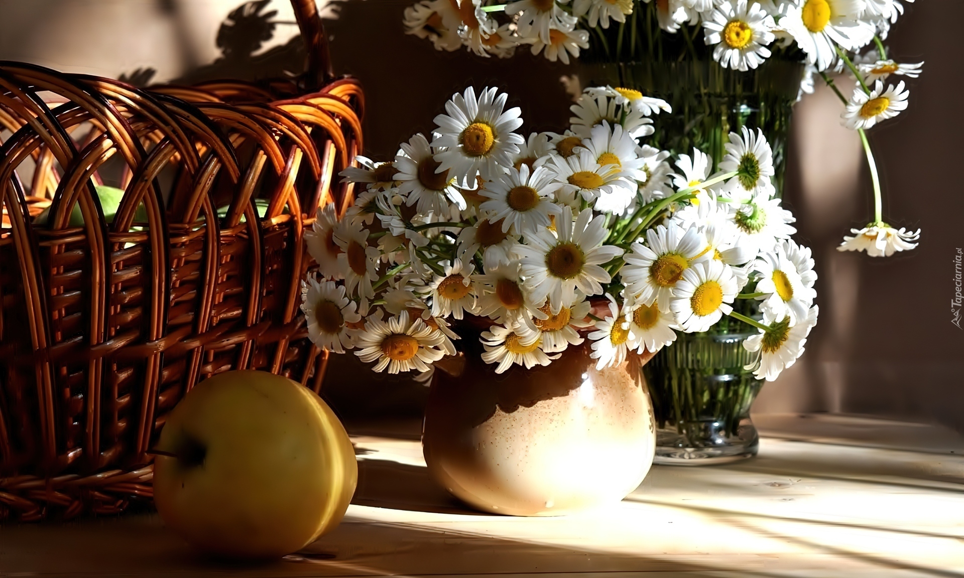 Edytor tapety: Kwiaty, Kosz, Wazon, Jabłko