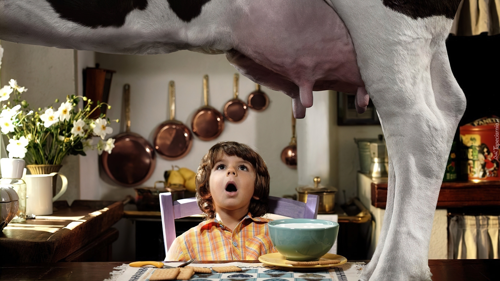 Edytor tapety: Kuchnia, Dziecko, Krowa