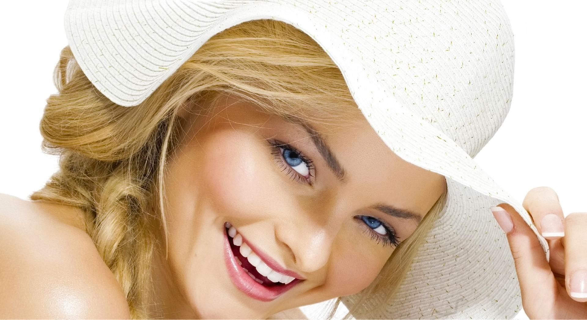 Edytor tapety: Kobieta, Blondynka, Uśmiech, Kapelusz