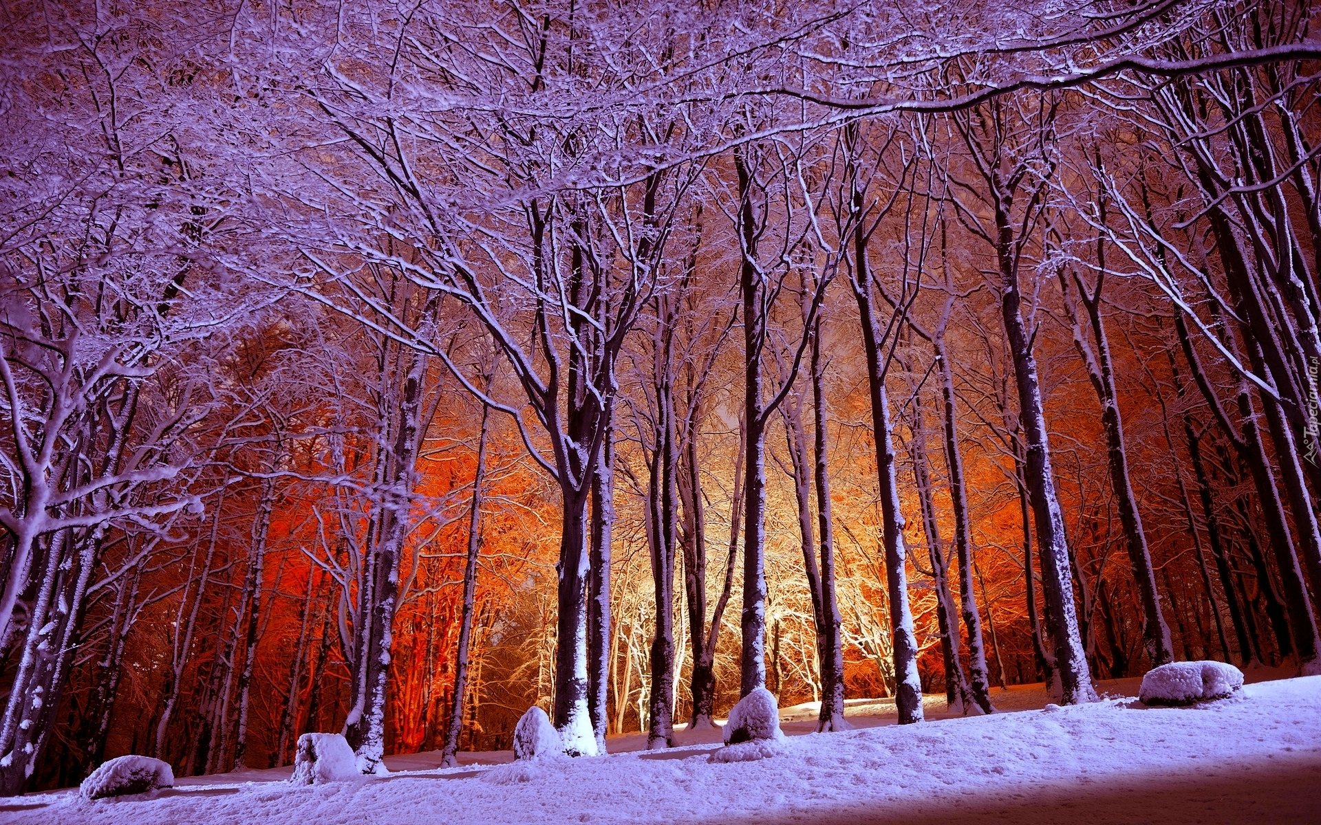 Edytor tapety: Zima, Park, Ośnieżone, Drzewa