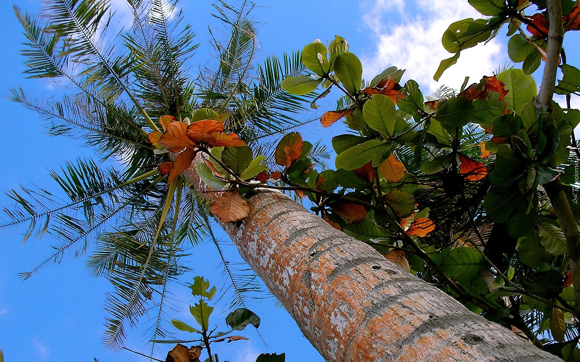 Edytor tapety: Drzewo, Palma, Liście, Kwiaty, Niebo, Pień