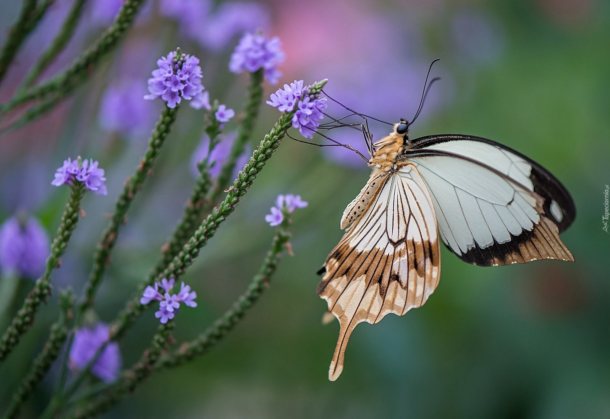 Edytor tapety: Motyl, Fioletowe, Kwiatki