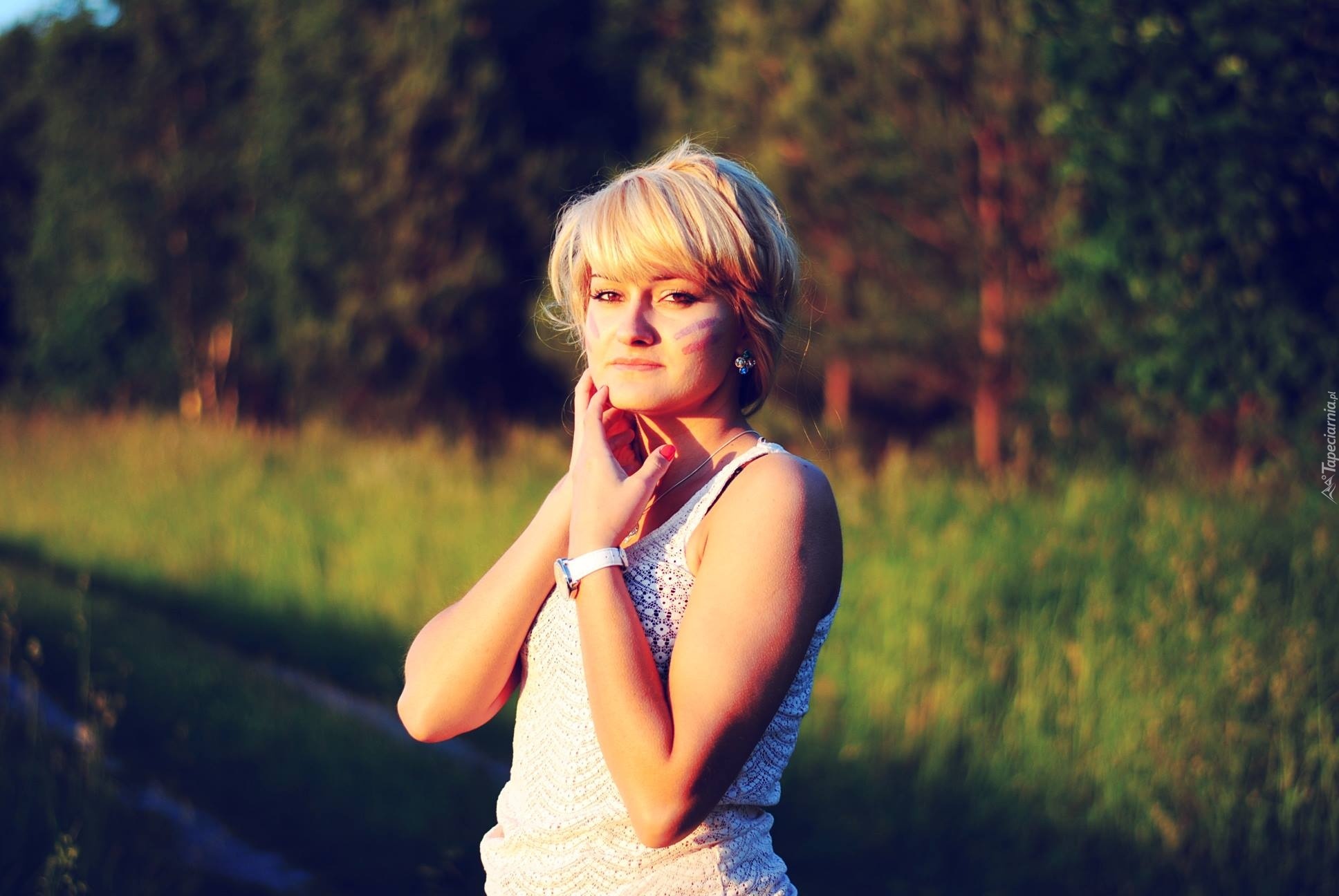 Edytor tapety: Kobieta, Blondynka, Umalowana, Twarz