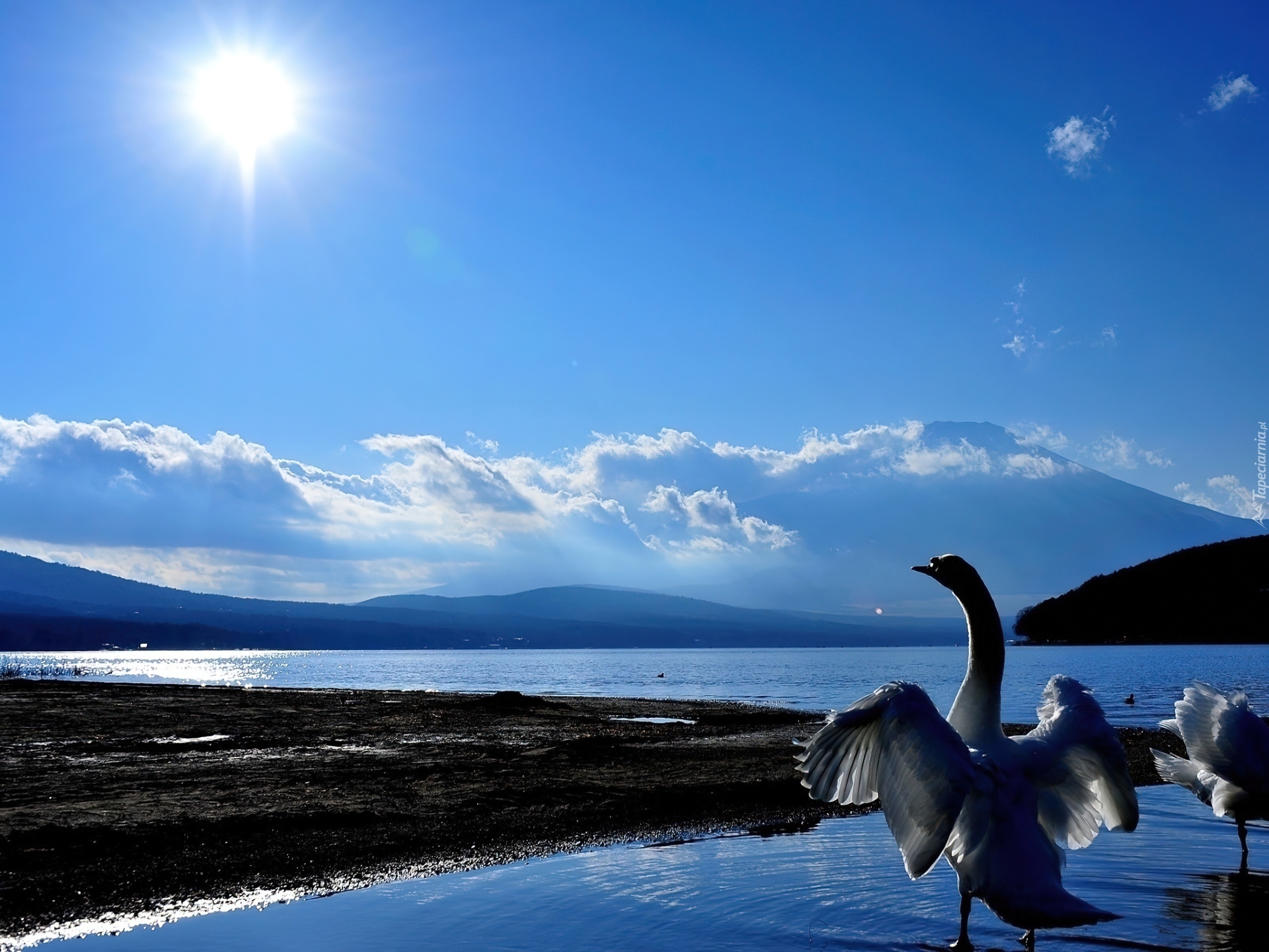 Edytor tapety: Jezioro, Chmury, Łabędzie
