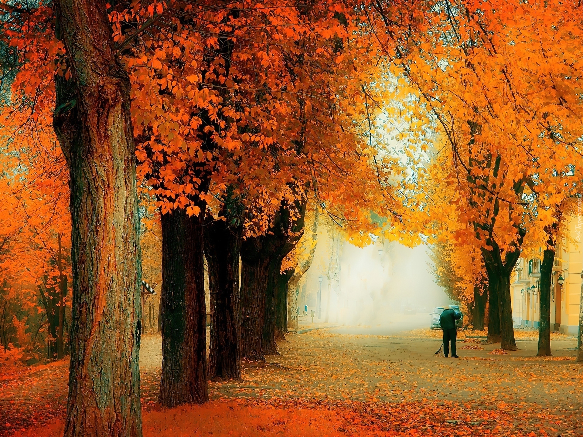 Edytor tapety: Jesień, Ulica, Alejka, Drzewa, Dozorca