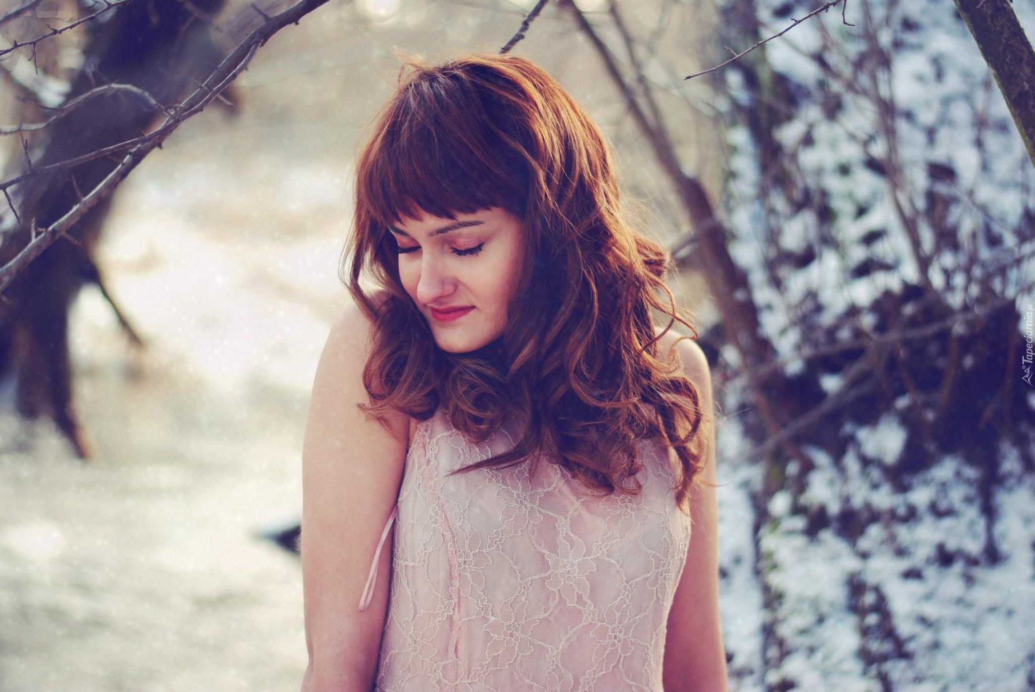 Edytor tapety: Zamyślona, Kobieta, Ciemne, Włosy