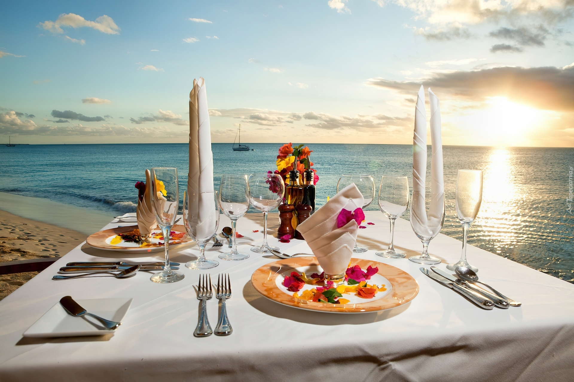 Edytor tapety: Śniadanie, Na, Plaży, Morze, Wschód, Słońca
