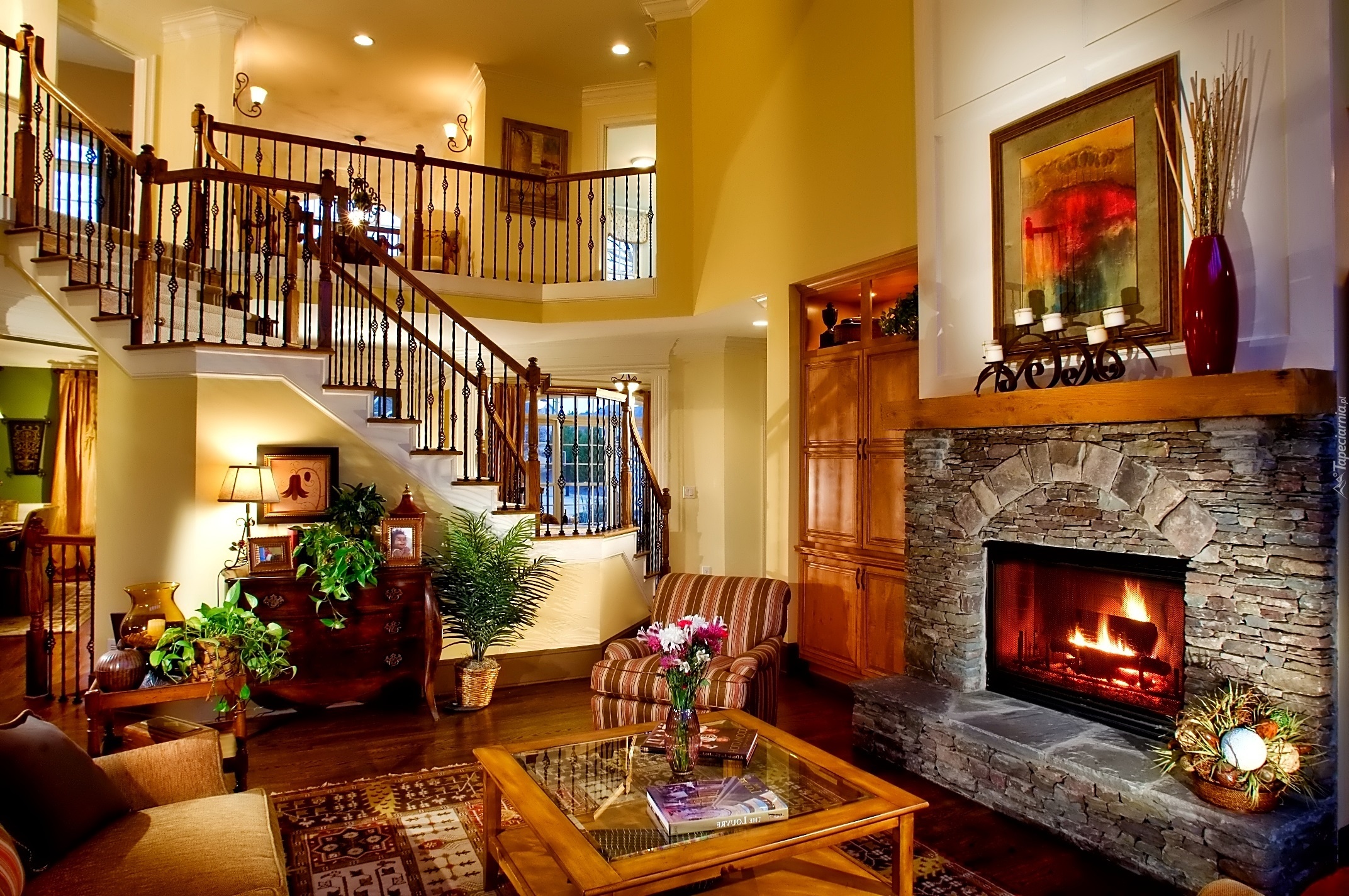 Edytor tapety: Salon, Kominek, Schody