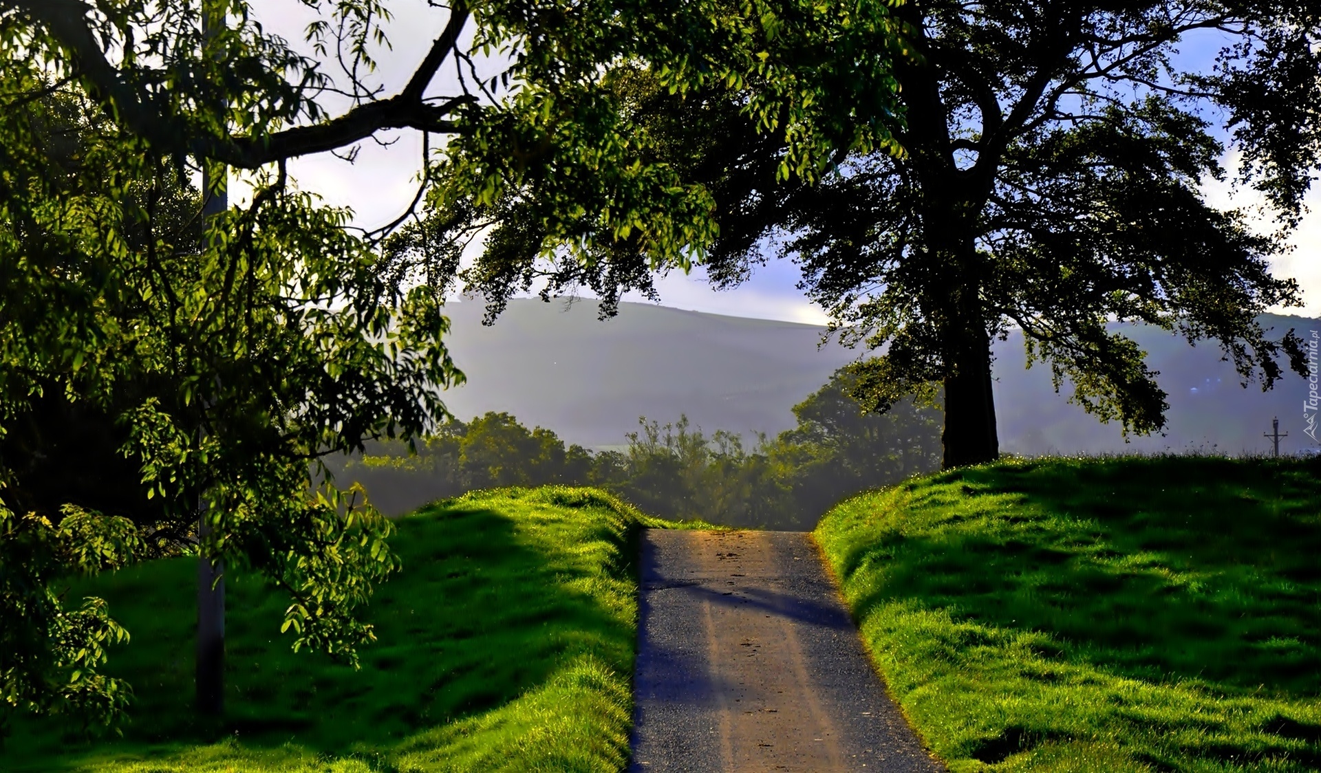 Edytor tapety: Droga, Drzewa, Trawa