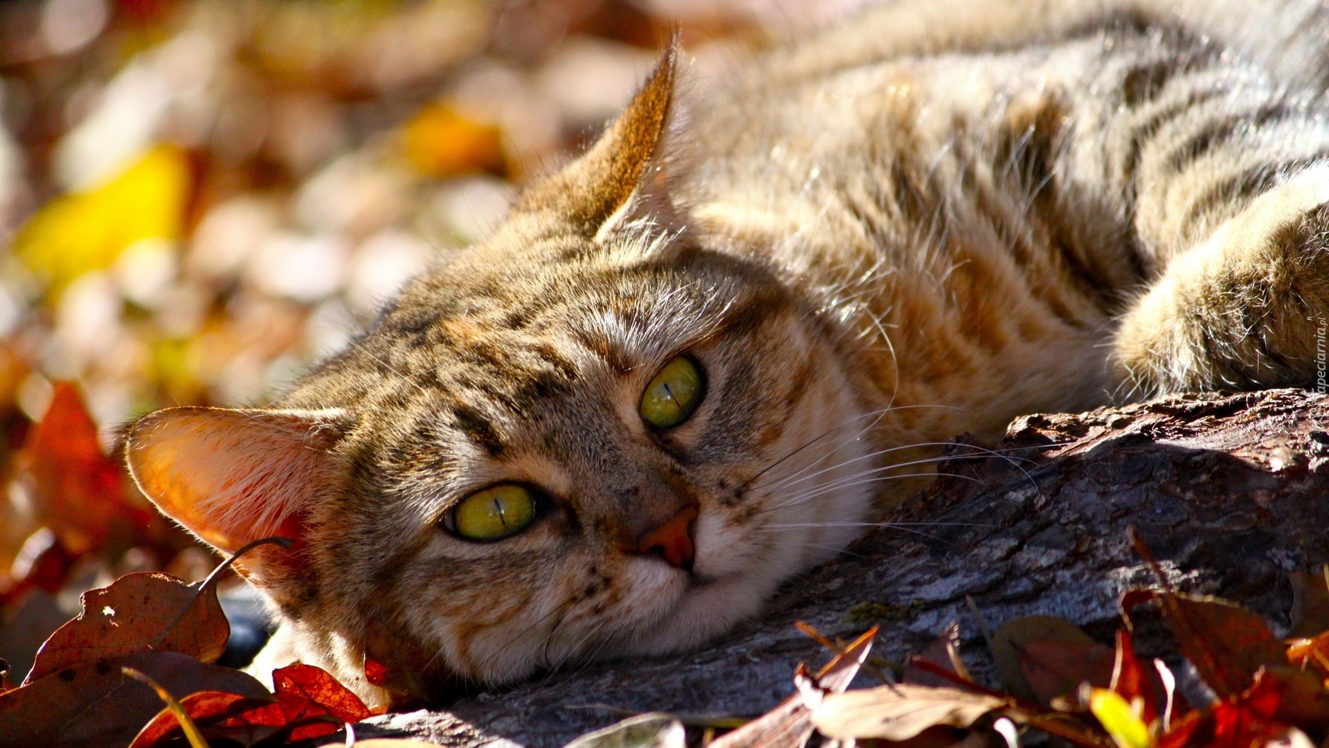 Edytor tapety: Kot, Łąka, Liście, Jesień