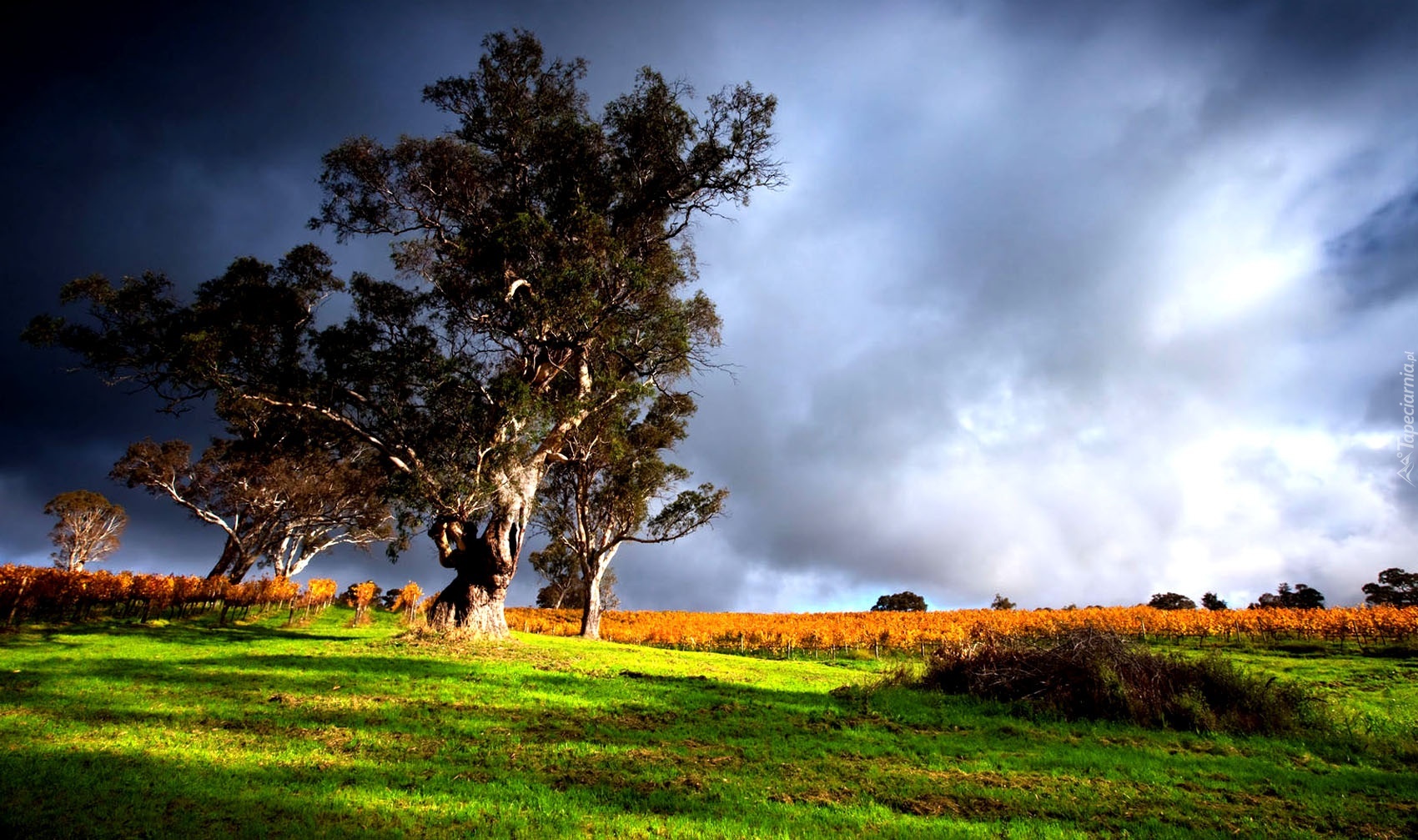 Edytor tapety: Pole, Uprawne, Łąka, Drzewa