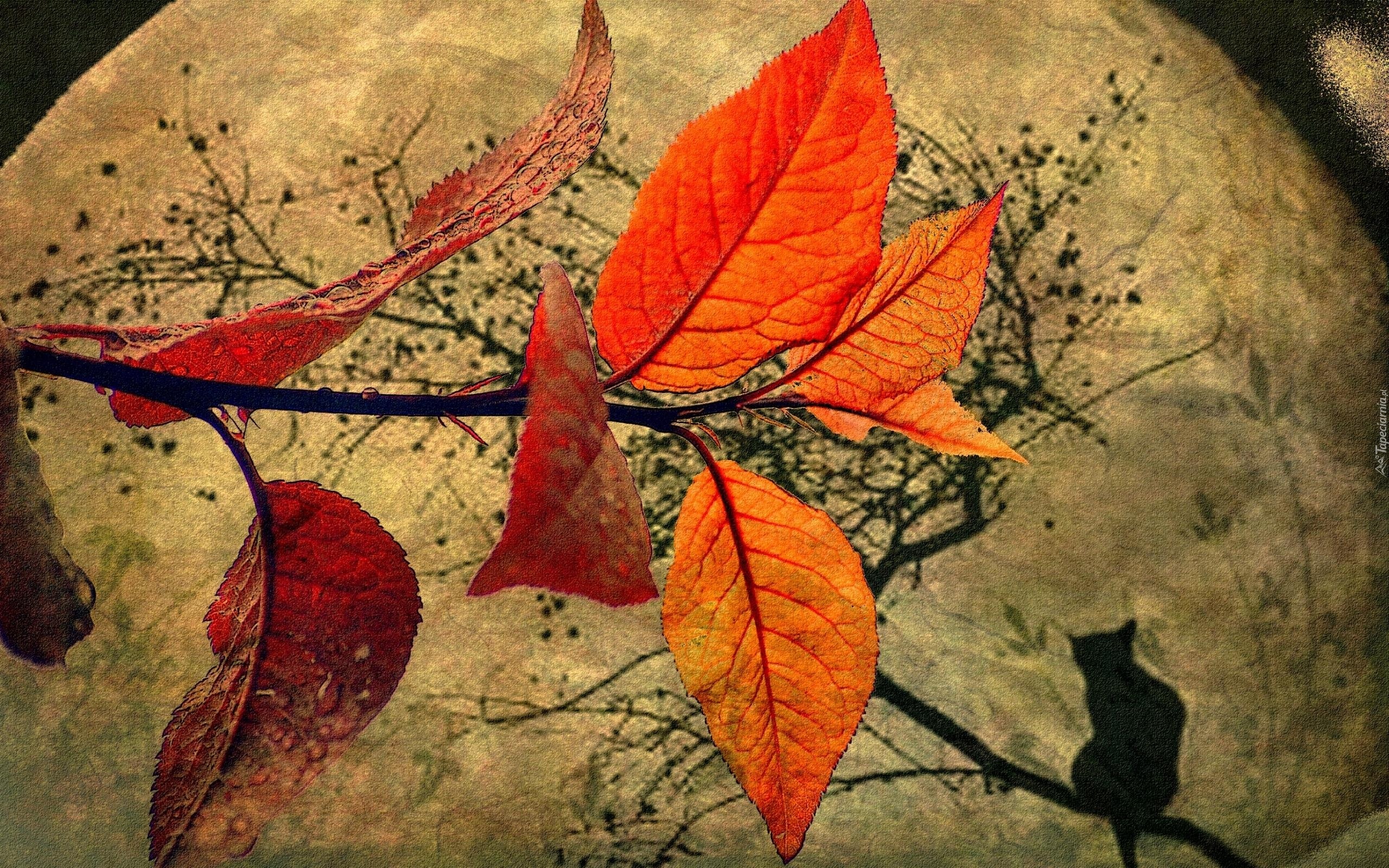 Edytor tapety: Liście, Kolorowe, Gałęzie, Kot