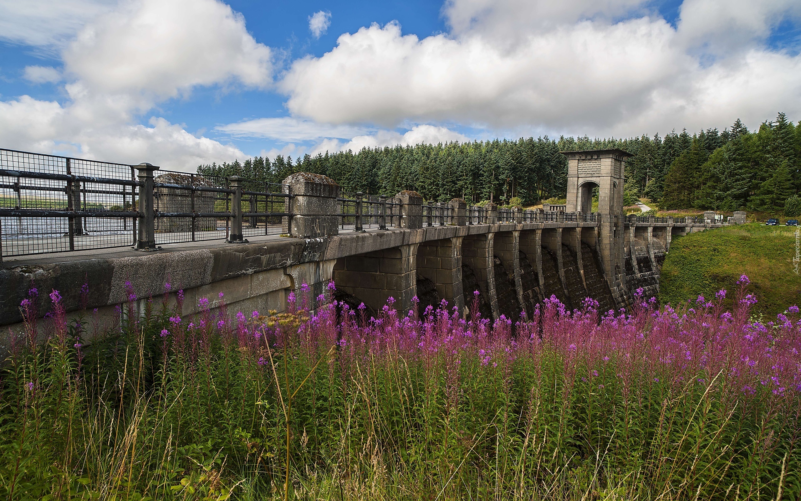 Edytor tapety: Rzeka, Las, Kwiaty, Tama