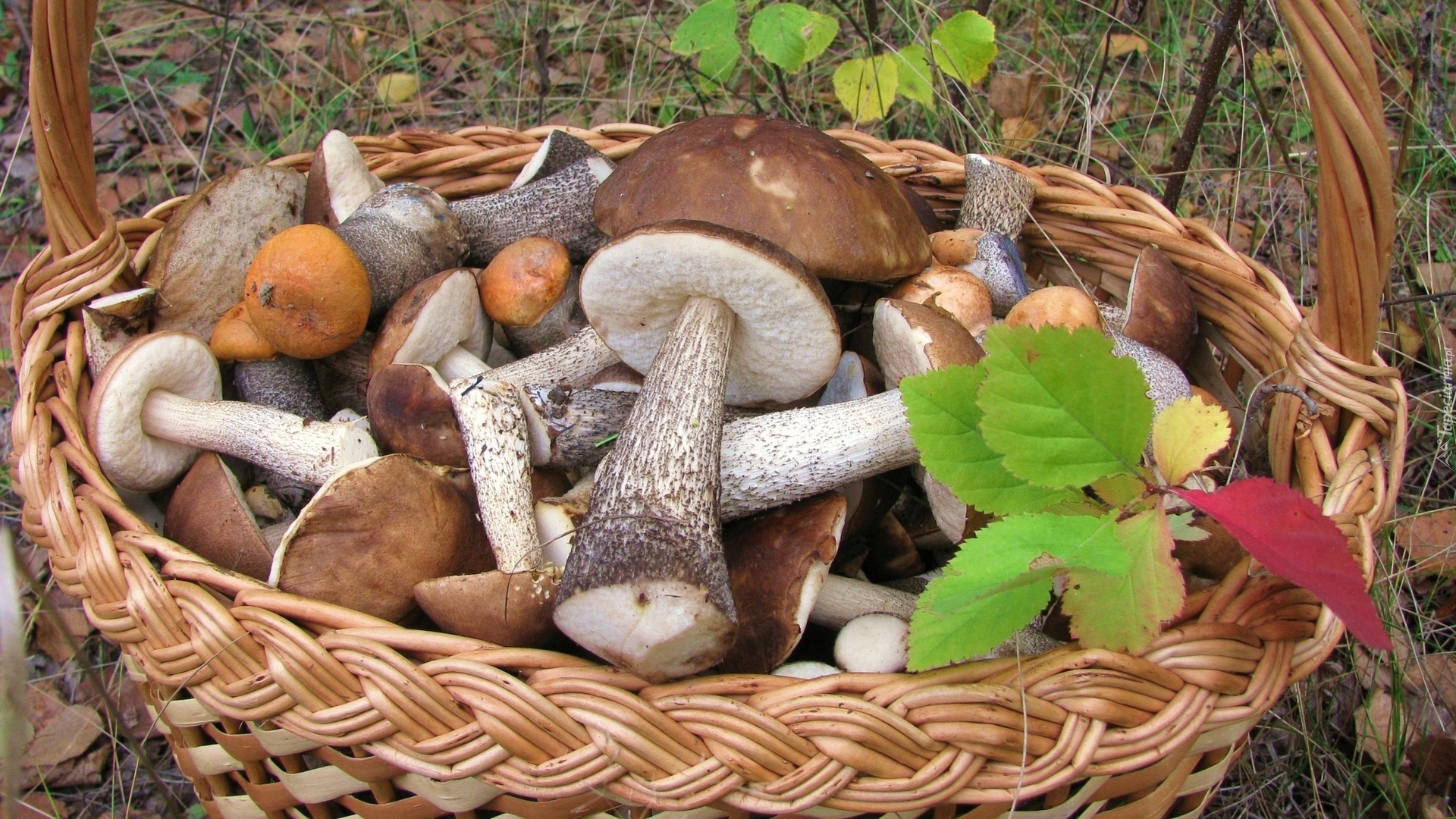 Edytor tapety: Kosz, Grzybów, Las, Jesienne, liście