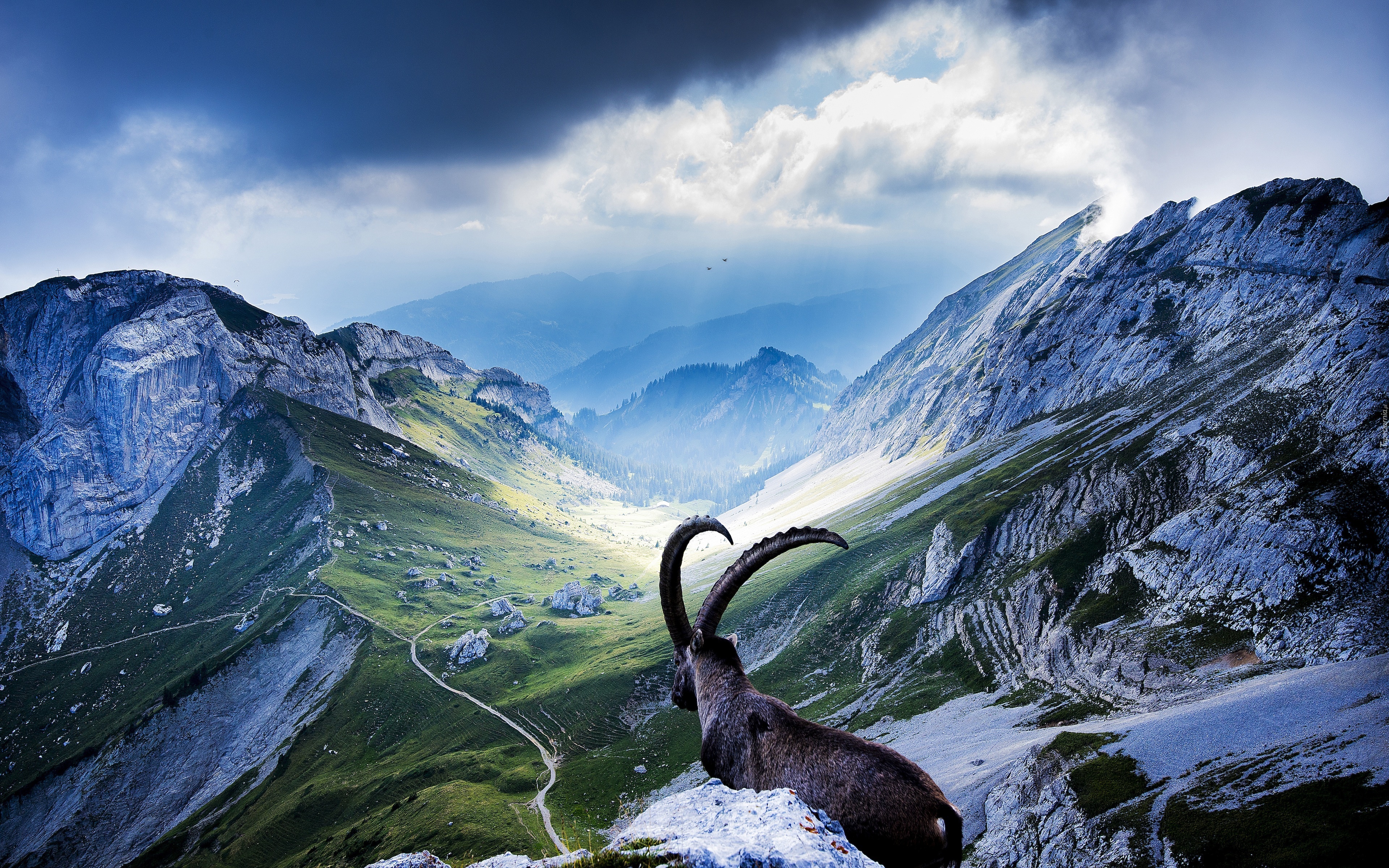 Edytor tapety: Góry, Alpy Urneńskie, Masyw Pilatus, Dolina, Kozioł, Szwajcaria