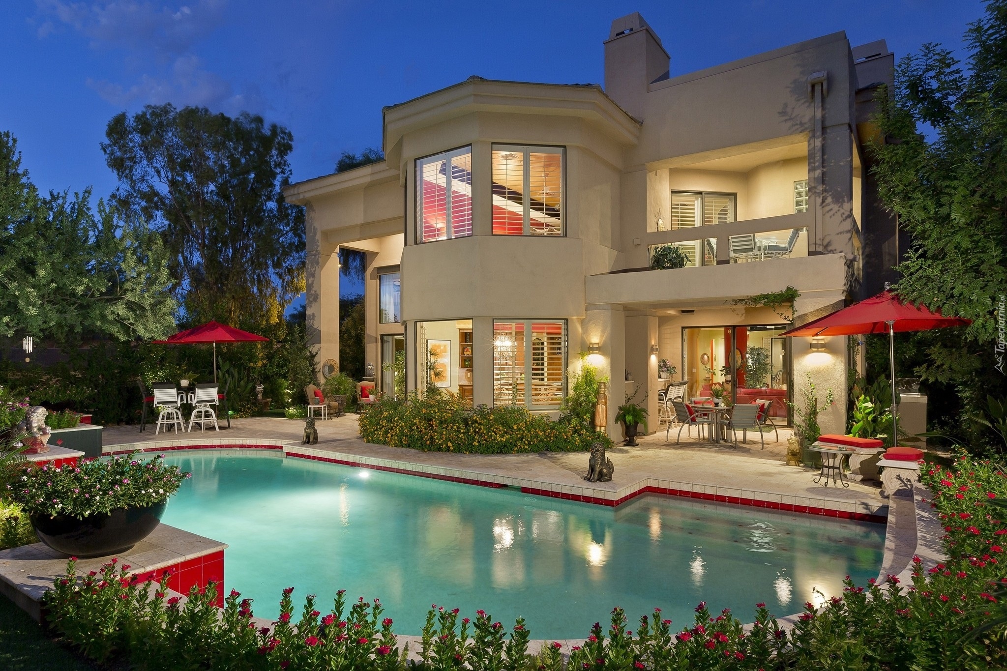 Edytor tapety: Dom, Willa, Basen, Ogród