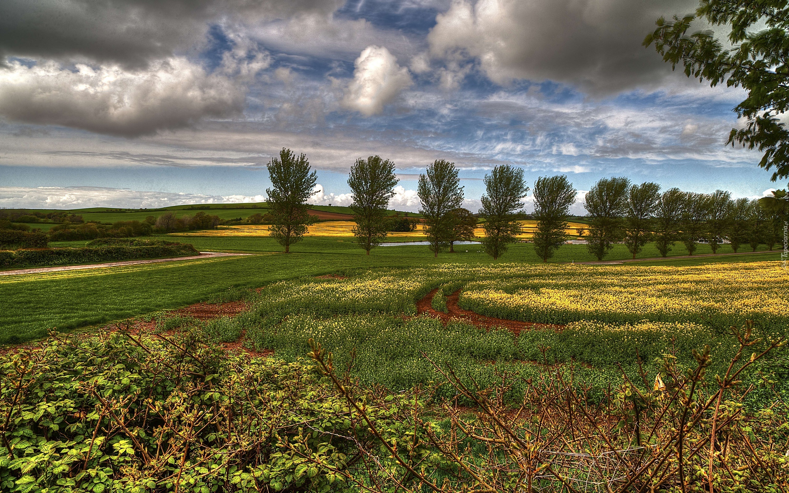 Edytor tapety: Pola, Łąki, Drzewa, Chmury