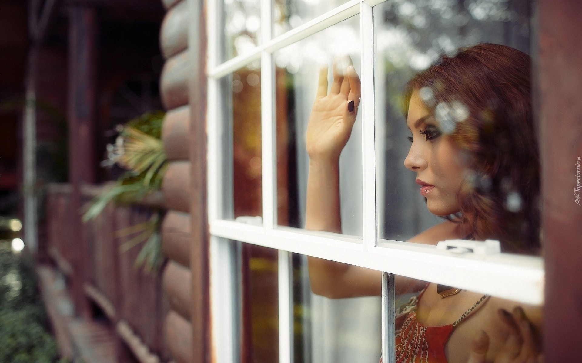 Edytor tapety: Zamyślona, Dziewczyna, Okno