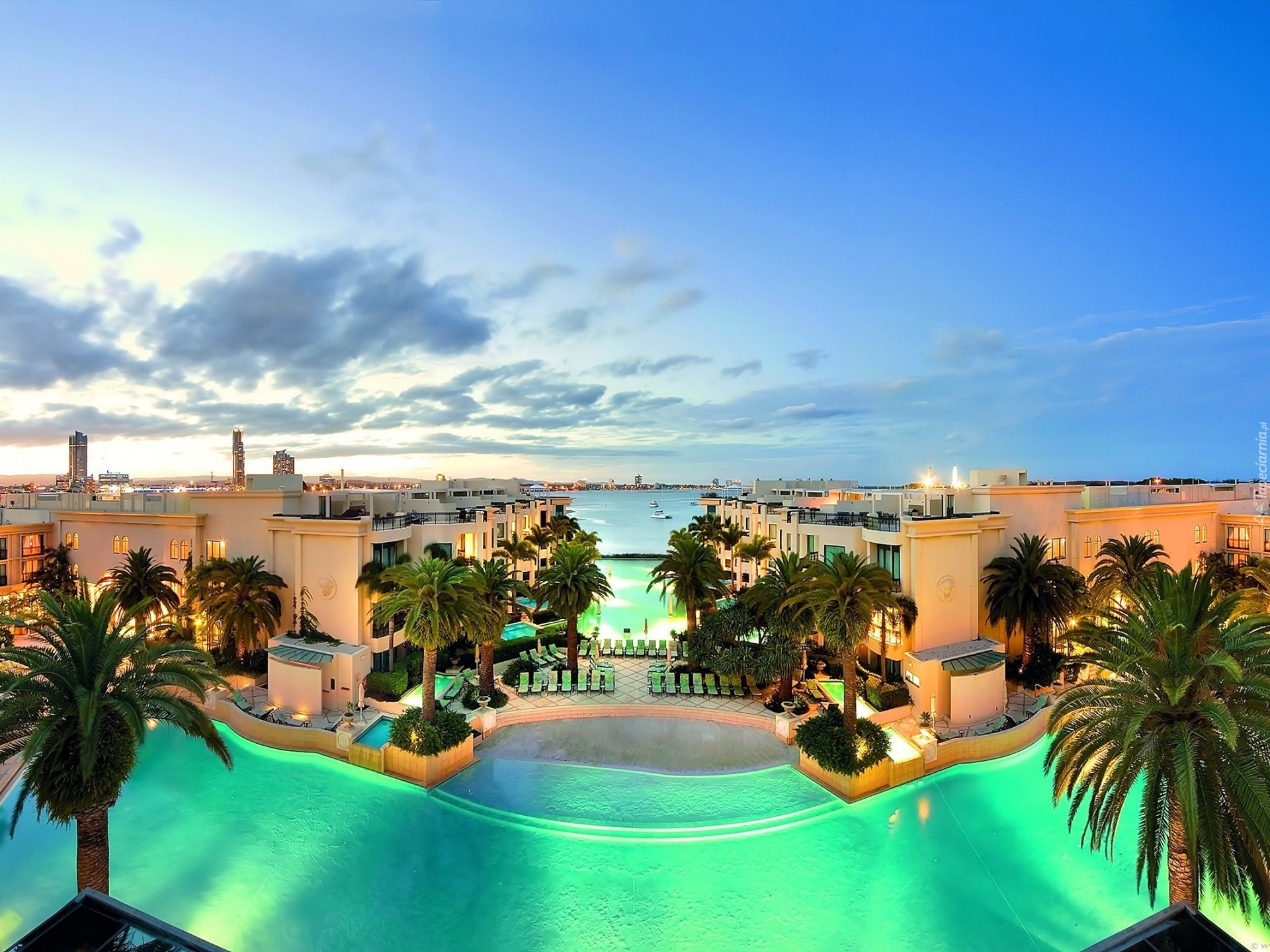 Edytor tapety: Luksusowy, Hotel, Basen, Palmy, Australia