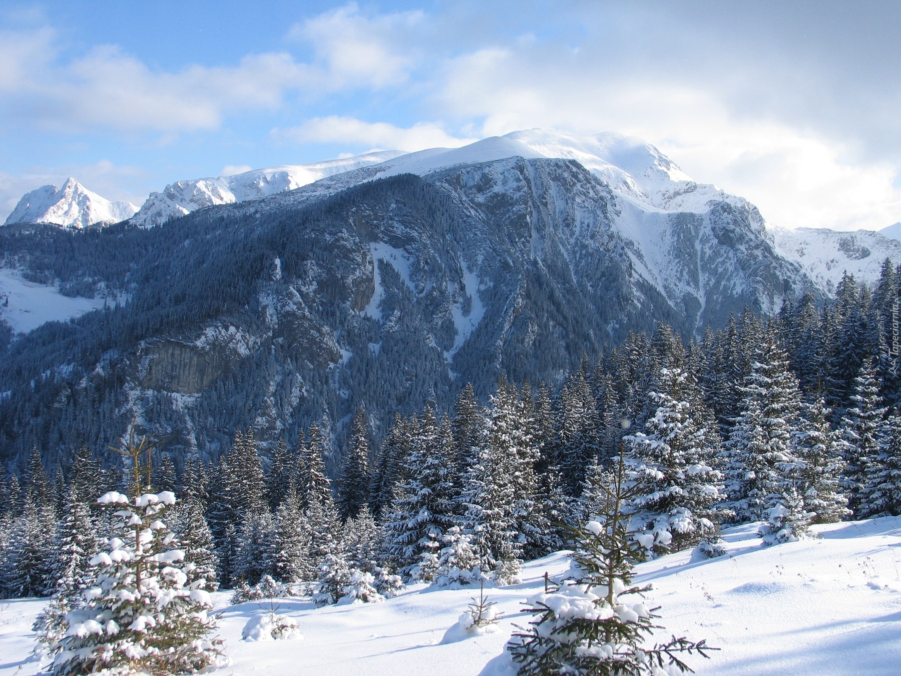 Edytor tapety: Drzewa, Zima, Śnieg, Góry, Chmury