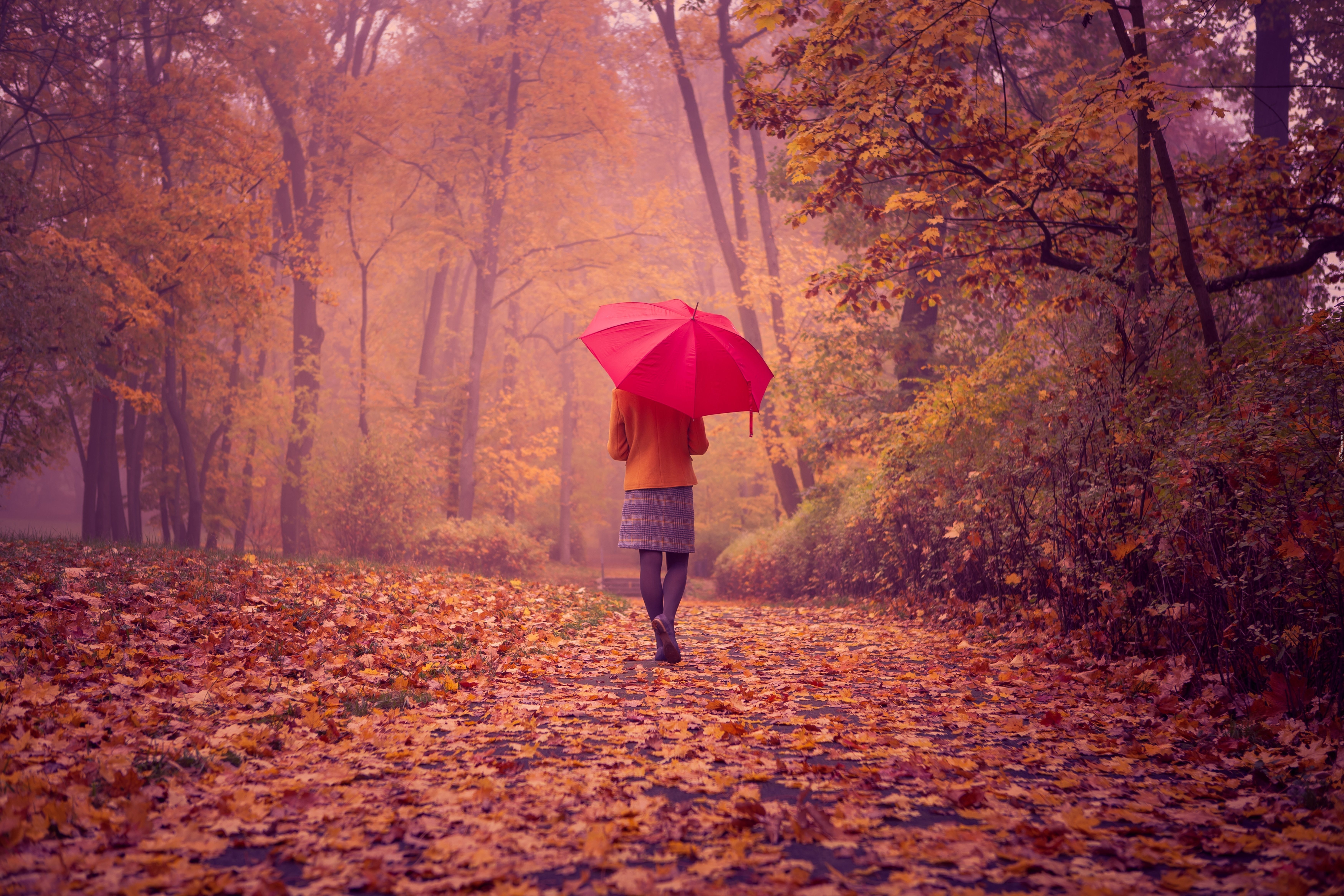 Edytor tapety: Park, Kobieta, Liście, Jesień