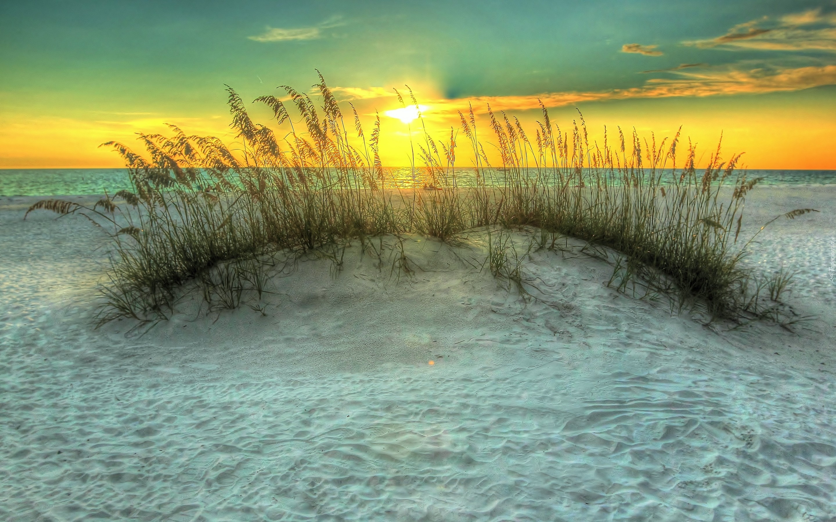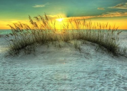 Edytor tapety: Zachód, Słońca, Morze, Plaża, Trawa
