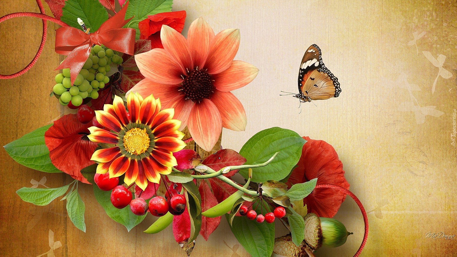 Edytor tapety: Jesienne, Kwiaty, Motyl, Art