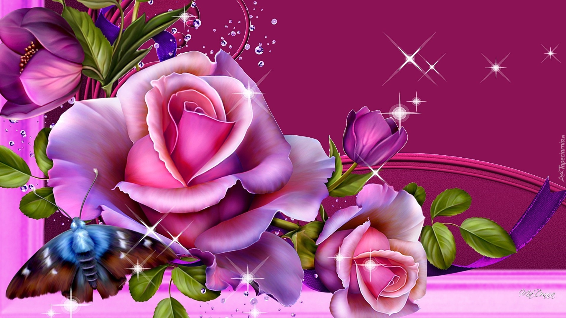 Edytor tapety: Purpurowe, Róże, Kompozycja, Art