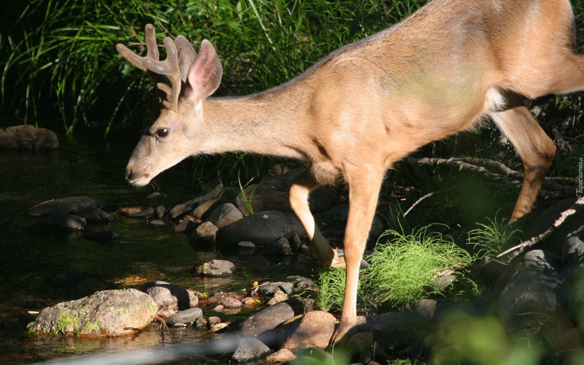 Edytor tapety: Jeleń, Rzeka, Kamienie