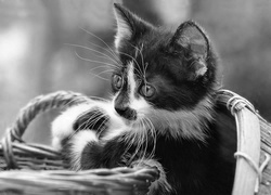 Edytor tapety: Czarno Biały, Kotek, Wiklinowy, Koszyk
