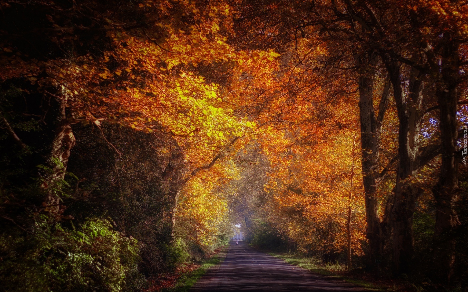 Edytor tapety: Droga, Drzewa, Przebijające, Światło, Jesień