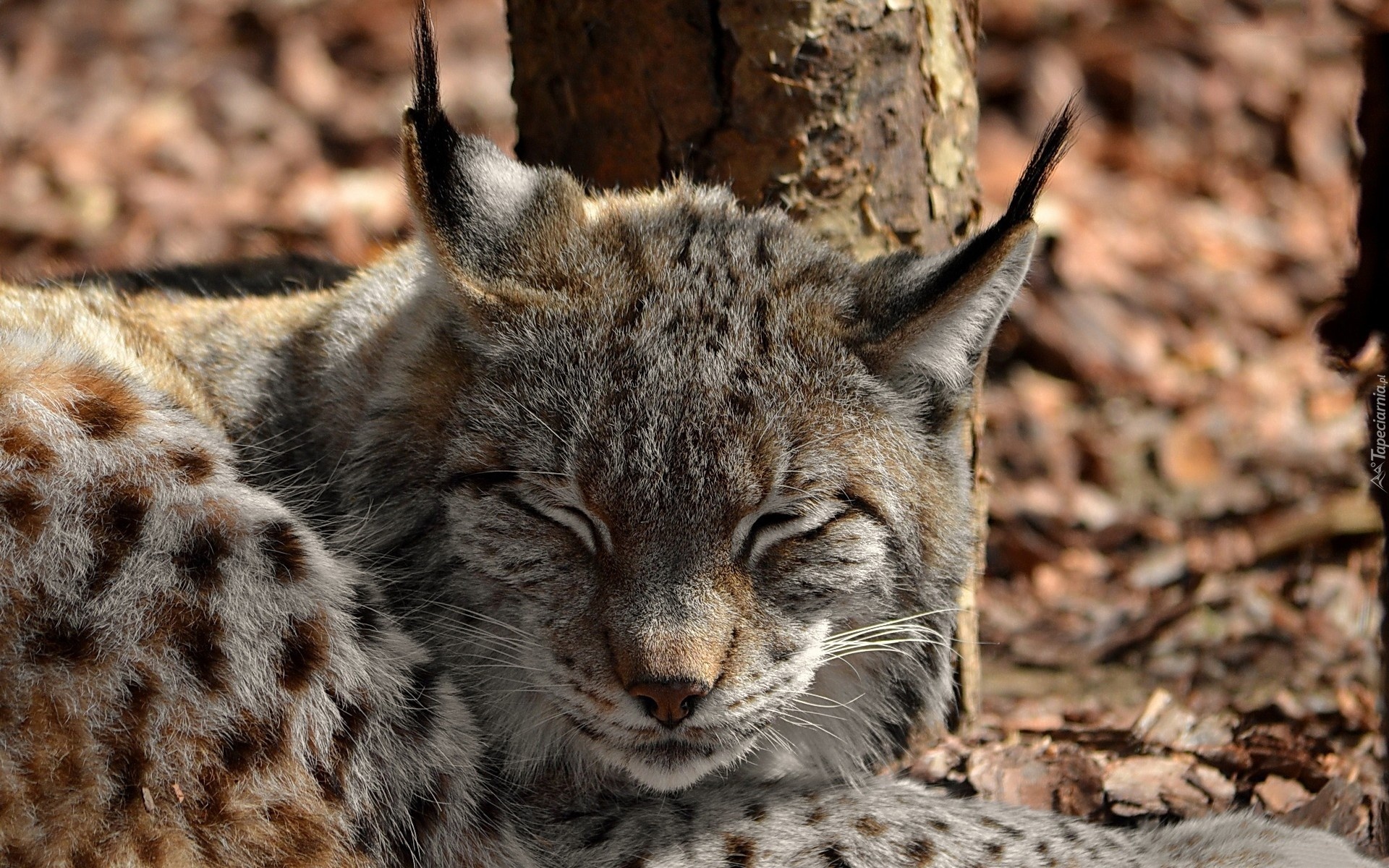 Edytor tapety: Śpiący, Ryś, Las, Liście