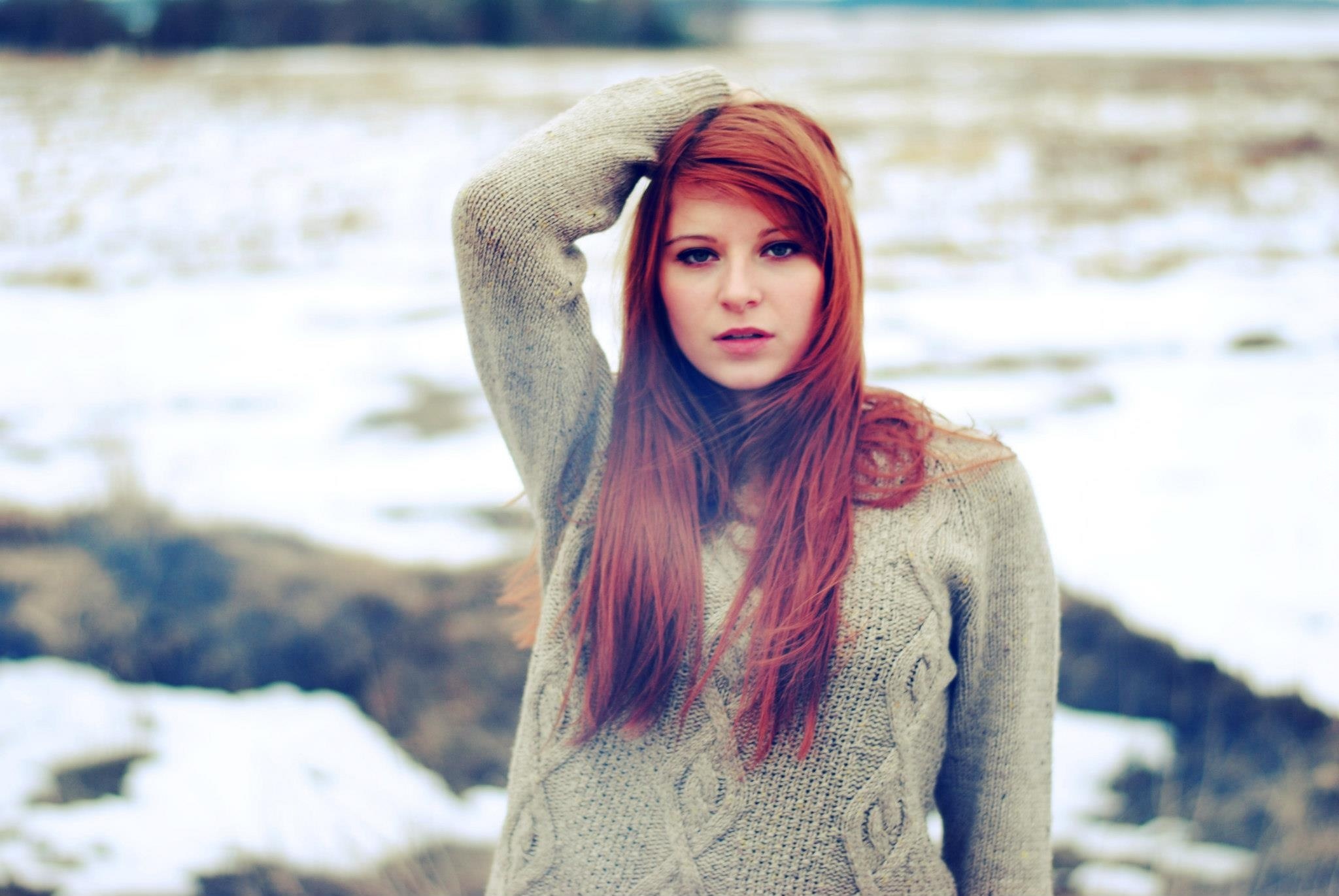 Edytor tapety: Ruda, Kobieta, Sweter