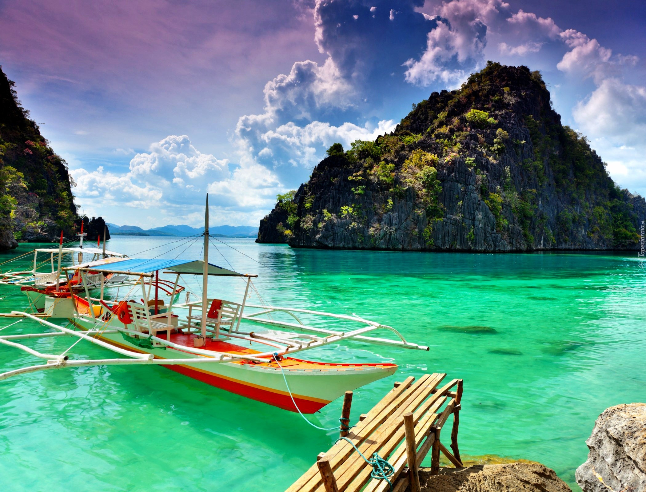 Edytor tapety: Chmury, Morze, Skały, Łódka