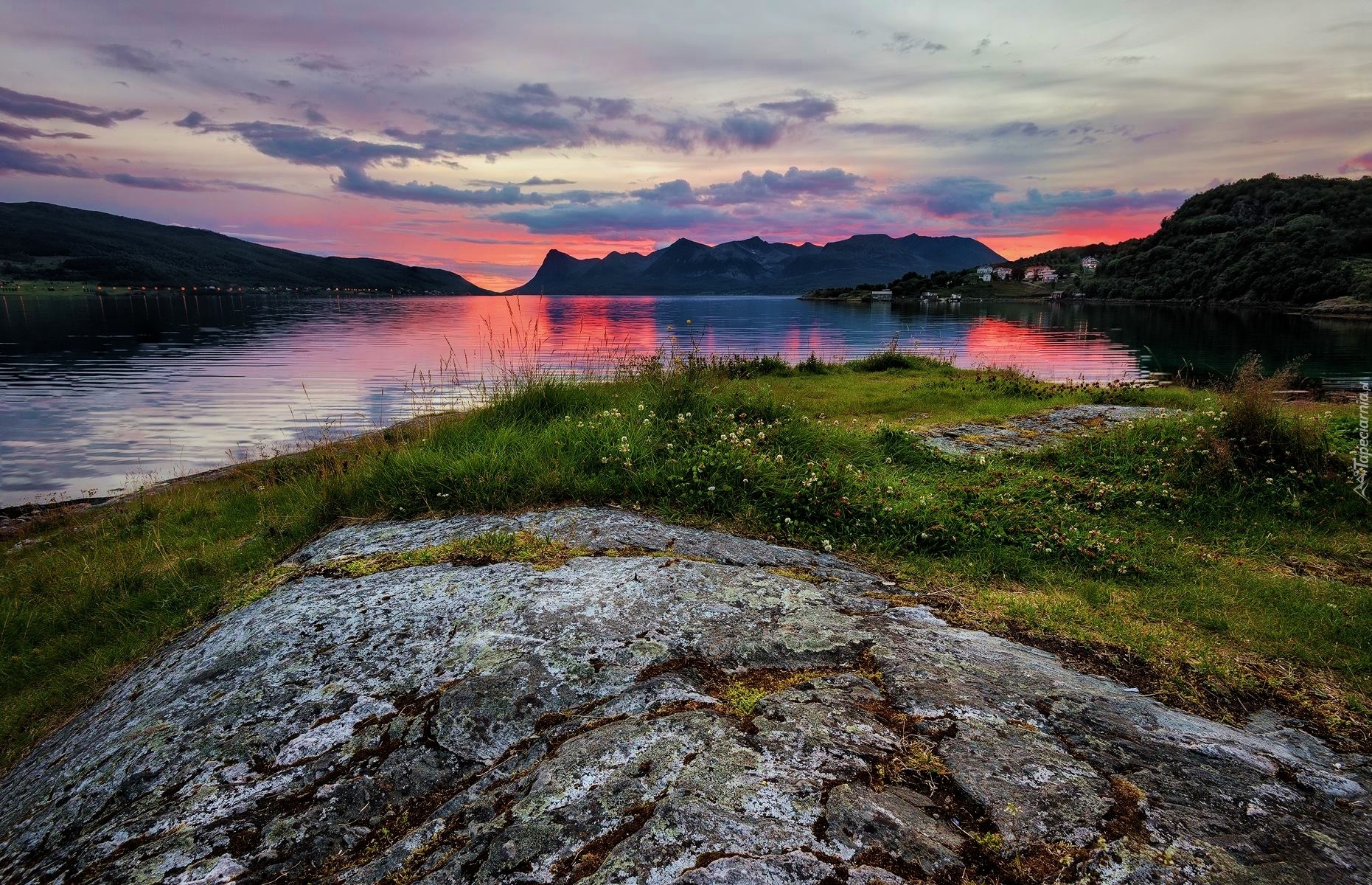 Edytor tapety: Zachód, Słońca, Morze, Góry