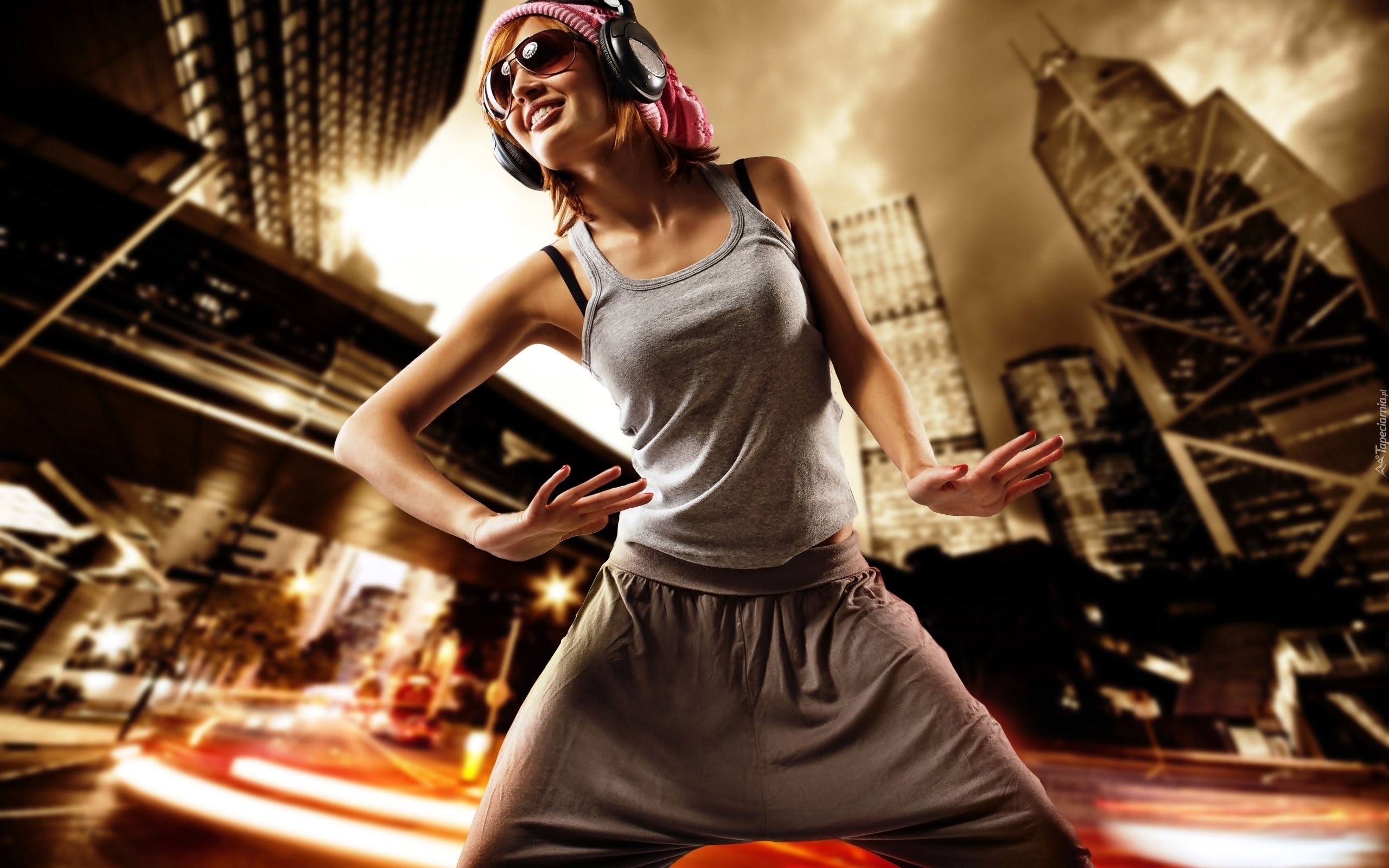 Edytor tapety: Dziewczyna, Taniec, Słuchawki, Okulary, Sportowy, Strój